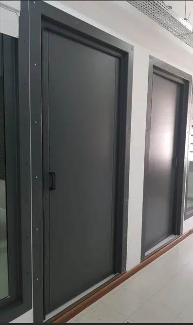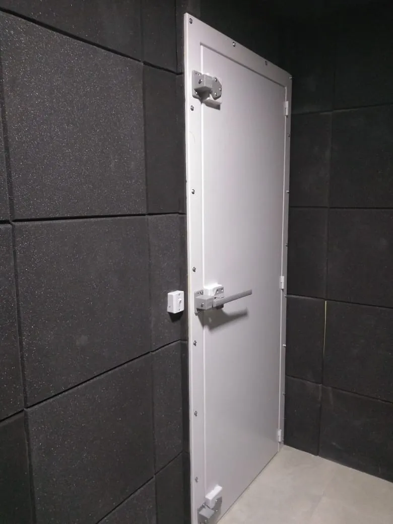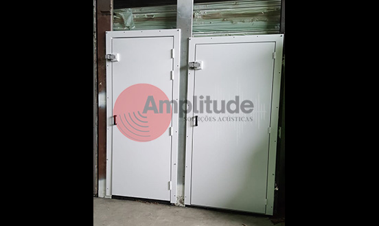 É uma porta fabricada em chapas de aço, desenvolvida para oferecer isolamento sonoro eficiente em ambientes industriais. É preenchida internamente com material de alta densidade e incombustível.
