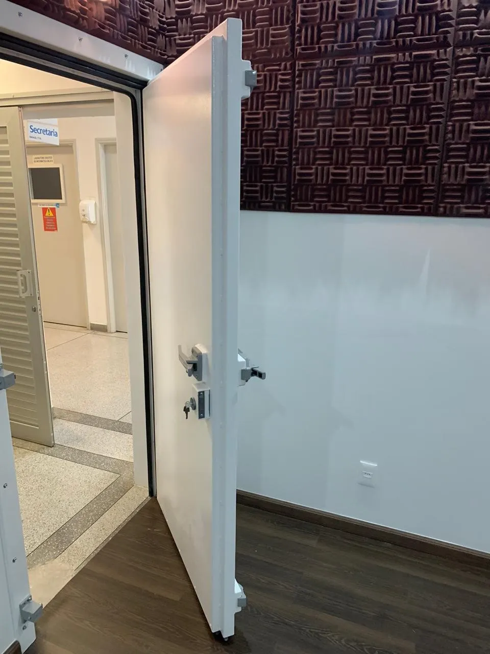 Portas acústicas são indicadas para atenuar o barulho excessivo em ambientes muito ruidosos como indústrias, salas de geradores e casas de máquinas, ajudando no controle do som e no cumprimento das normas regulamentadoras.